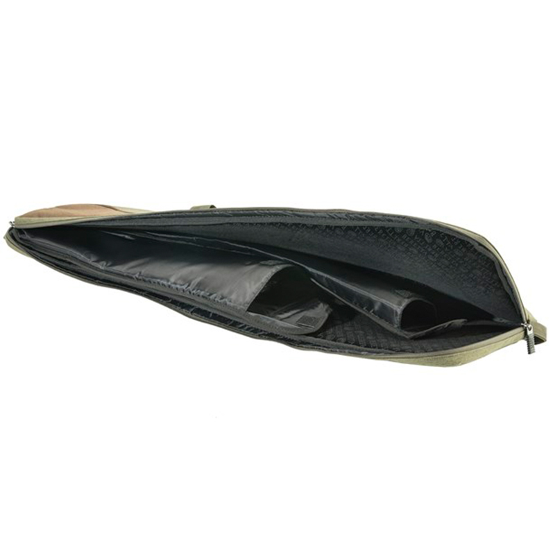 Levehető vadászpuskatáska két belső rekesszel, hogy a csövet és az elülső részt elválasztva és védve tartsa a készlettől és a toktól.