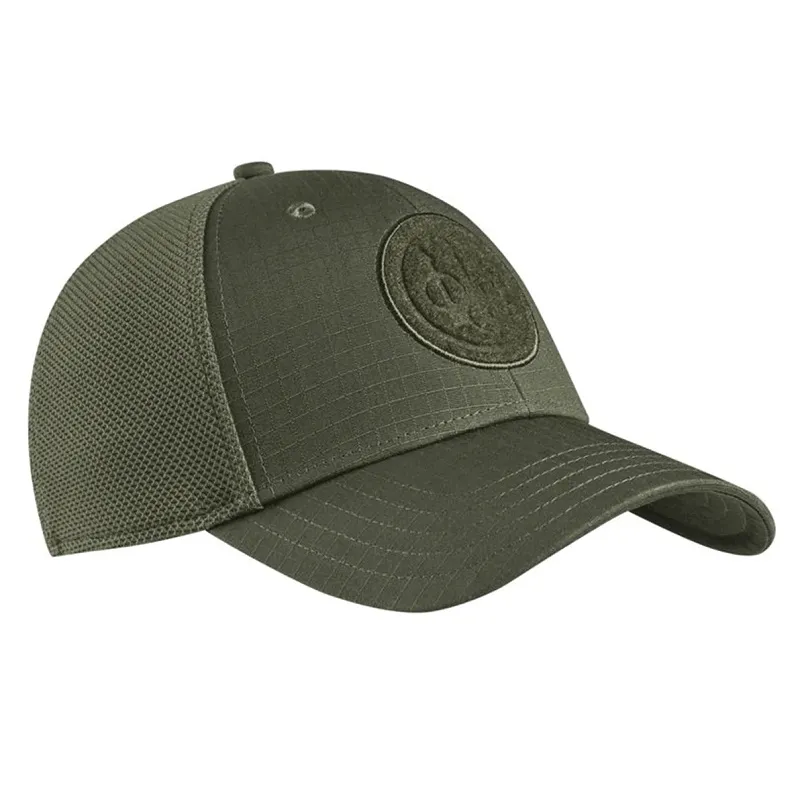 A Shield Flexfit sapka nylonból, pamut ripstopból és 3D hálóból készült. Az elején tépőzáras tapasz található.
