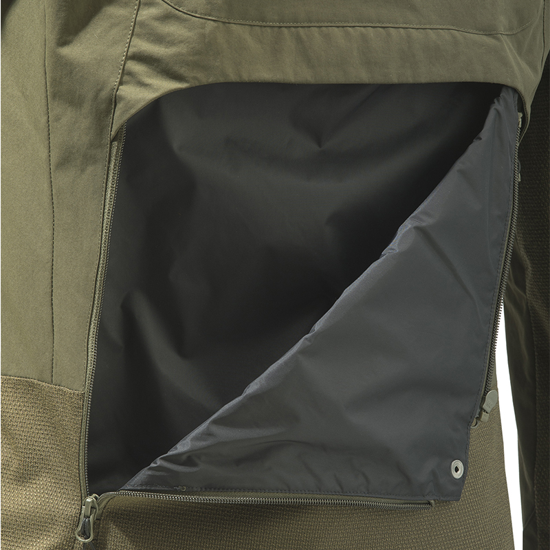 Férfi vadászkabát Thorn Resistant EVO Jacket aktív vadászatra tervezve, ahol kulcsfontosságú a tövisekkel és bokrokkal szembeni ellenállás. A kabát vízálló és légáteresztő, tartóssága pedig a kopásgátló betéteknek köszönhetően megnőtt.Vízálló és lélegző a BWB EVO-nak köszönhetően - Beretta Waterproof Breathable EVO membrán - membrán elasztikus béléssel. A fő anyag nagy szilárdságú poliamid DWR - Durable Water Repellent - kezeléssel. Kopásálló betétek a kulcsfontosságú területeken a nagyobb tartósság érdekében. Jellemzők:Levehető kapucni "Easy move" húzózsinórral a jó látás garantálása érdekébenBelső gallér meleg és kényelmes mikropolárbólYKK cipzáros záródás és gombos cipzáros huzatKopásálló betétek a vállak, a könyökök és a fenék védelméreNagy elülső zseb belső elrendezéssel a rádió és egyéb tartozékok számáraOldalzsebek YKK cipzárralTépőzáras beállítás a csuklónMosható és teljesen nyitható csomagtartó YKK cipzárralAlul húzózsinórKivehető pántok "Beretta Hands Free"Belső cipzáras zsebek gumi YKK Beretta logóval a bal ujjonSzabás: normál szabású